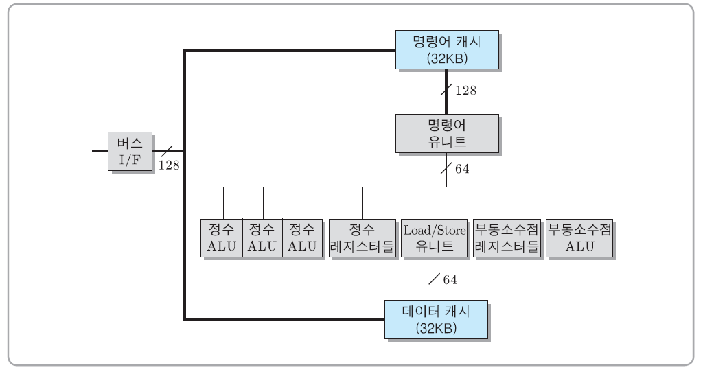 - 명령어 캐시는 명령어 유니트(instruction unit)로 명령어를 동시에 두 개씩 공급한다.