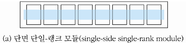 - 단면 모듈(SIMM) 상에 x8 조직의 SDRAM 8개를 병렬접속 하여 하나 의 랭크를 구성함으로써, 64비트 데이터가 한 번에 버스를 통하여 전 송되도록 구성한 기억장치 모듈