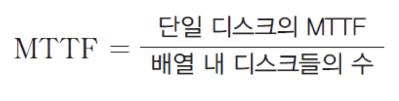 각 디스크의 MTTF가 일정하다고 가정할 때, 디스크 배열의 MTTF는 다음과 같아진다.