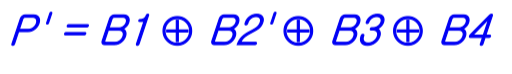 ex) 두 번째 디스크에 저장된 블록 B2가 새로이 쓰여저 B2'로 변경된다고 가정하면 새로운 패리티 블록 P'는 모든 블록들의, 내용에 대하여 exclusive-OR 연산을 수행함으로써 구할 수 있다.