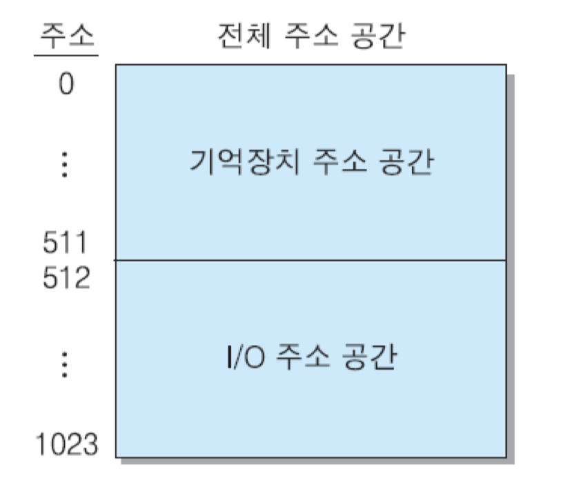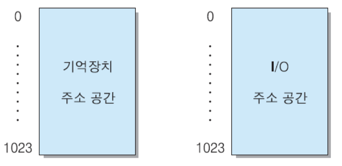 - ex) 주소 비트의 수가 10개라면, 기억장치 주소와 I/O 주소가 각각 1024개씩 할당될 수 있다.