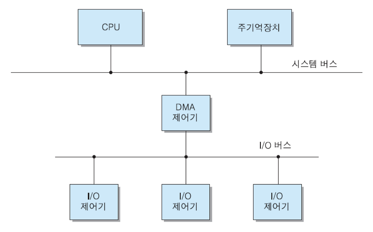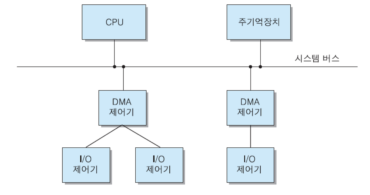 - 즉, 하나의 DMA 제어기가 I/O 버스를 통하여 여러 I/O 장치들을 위한 DMA 동작들을 지원하는 것이다.