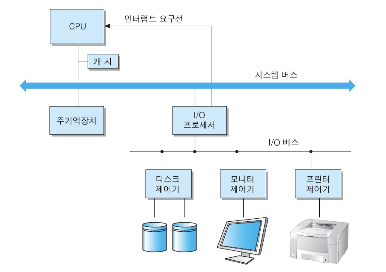 - 특히 IOP는 프로세서와 내부 기억장치도 포함하고 있기 때문에, 운영체제(OS)의 I/O 장치 드라이버(I/O device driver) 프로그램들을 수행할 수 있다.