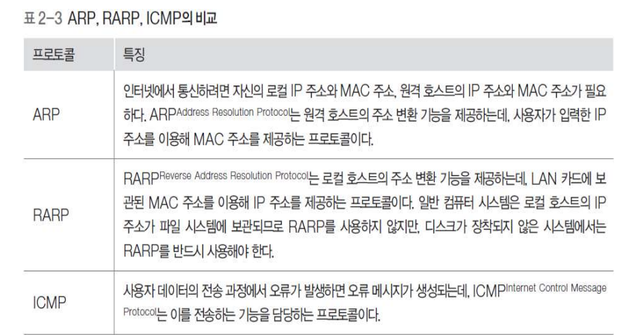 맨 위의 응용 프로그램은 TCP, UDP를 사용해 데이터 송수신 기능을 수행하지만, 네트워크 계층의 IP프로토콜을 직접 사용하기도 한다. ICMP와 ARP/RARP는 네트워크 계층에 소속되어 IP의 동작을 도와준다.