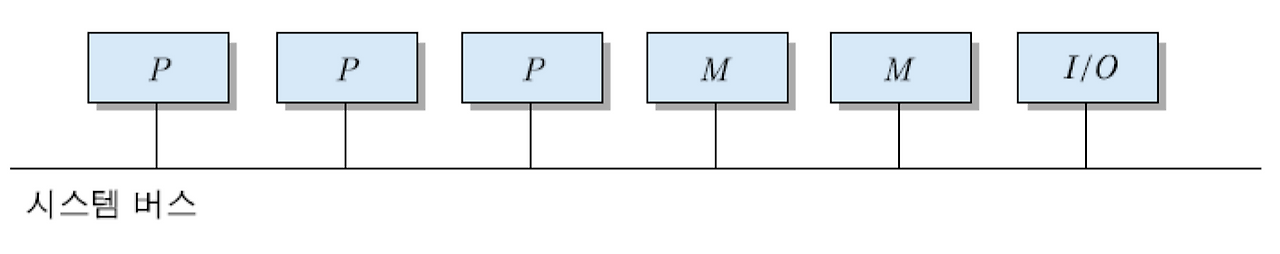 - 프로세서들은 주기억장치와 I/O 장치들을 공유하고, 버스 혹은 간단한 연결 방식에 의해 상호 연결된다.