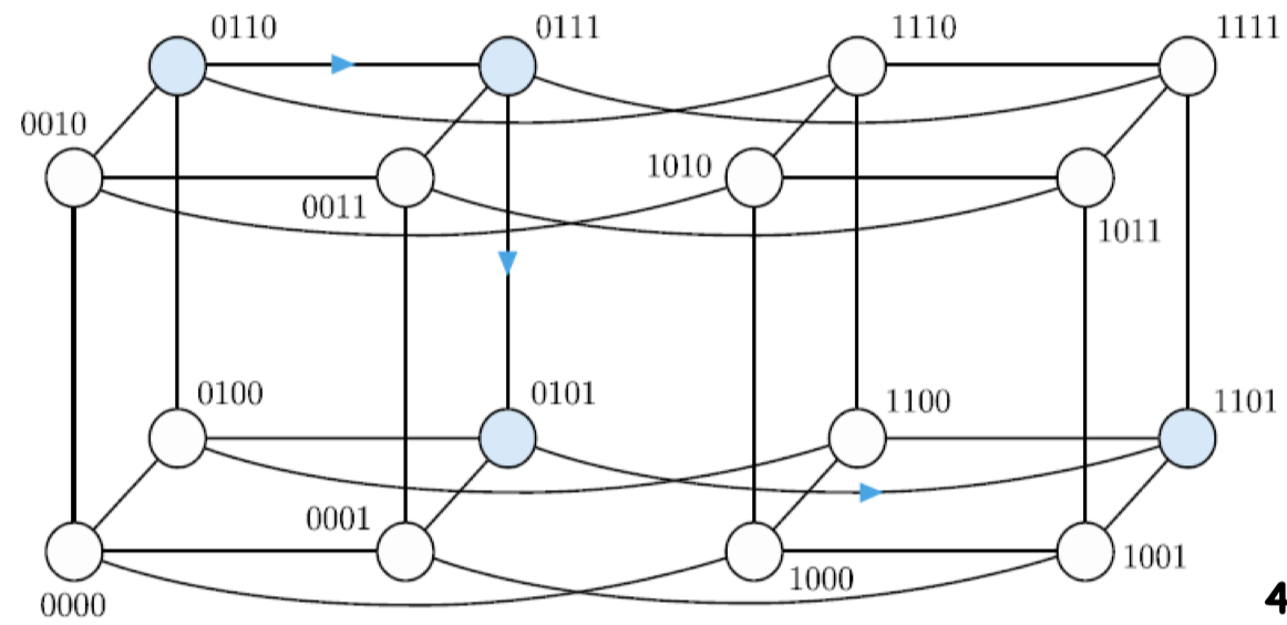 - 즉, 차원을 하나씩 증가시킬 때마다 각 노드에 링크를 한 개씩만 추가하면 되며, 그 때마다 노드의 수는 두 배가 된다.