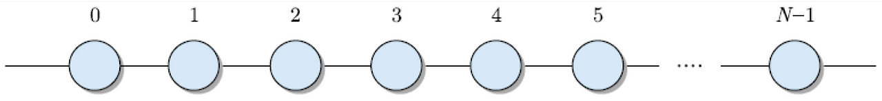 - 이 연결 구조는 N개의 노드들이 (N-1)개의 링크들에 의하여 차례대로 연결되며, 선형 배열(linear array)라고 부른다.