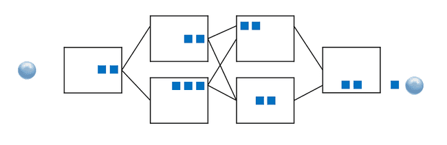 가상 회선 방식에서 패킷을 전송하는 방식을 시간의 흐름에 따라 보여주는 그림이다. 가상 회선을 통해 모든 패킷이 동일한 경로로 전달되는 것을 보여준다. 이러한 방식에서는 패킷의 도착 순서가 뒤바뀔 수 없다.