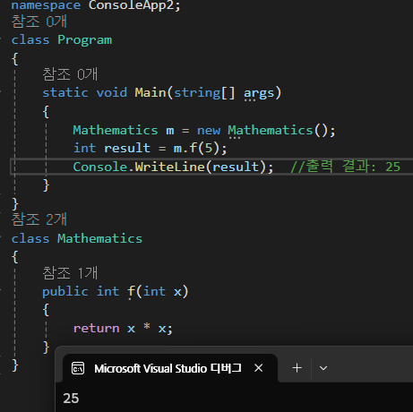 수학의 함수와 C# 클래스의 메서드를 비교한 차이점