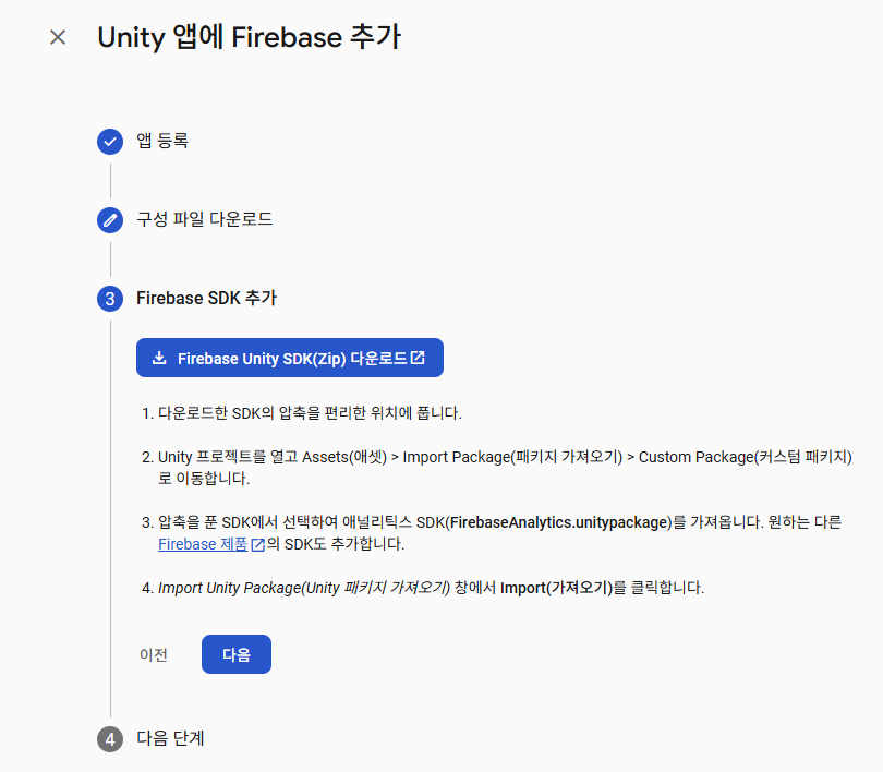 템플릿은 firebase와 연동할 UnityApplication의 성격을 고려하여 템플릿을 생성합니다.
