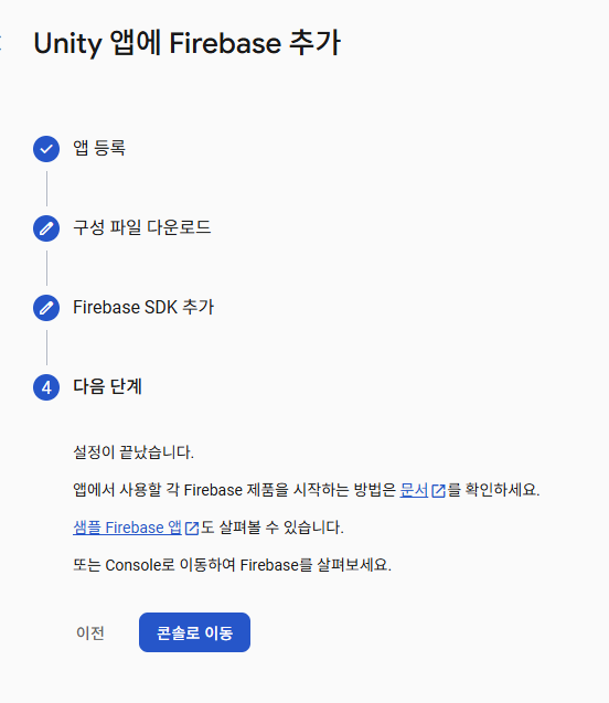 이후 생성된 Firebase 프로젝트를 어떤 앱에 연동할지 선택하면 된다. 필자의 경우 유니티를 활용한 간단한 게임을 개발할 예정이기 때문에 unity를 선택했습니다.
