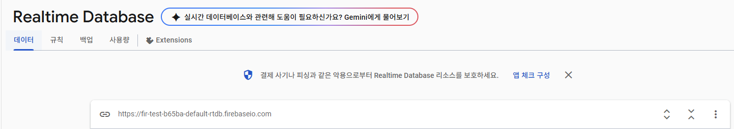 그리고 리얼타임 데이터베이스를 추가하며, 테스트 모드로 설정했습니다.