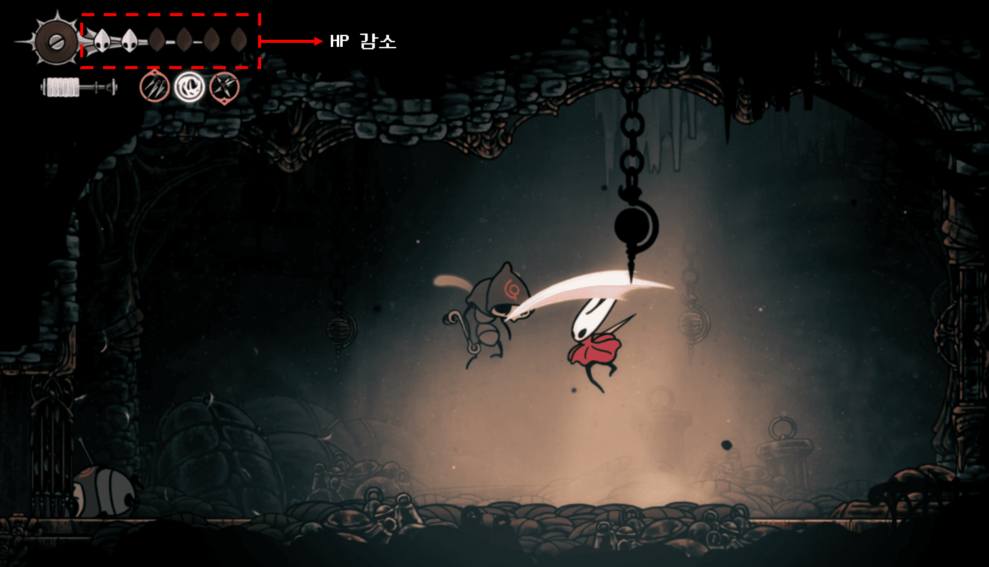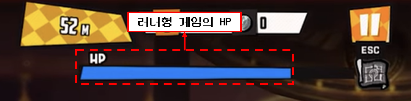 플레이어의 체력 메커니즘은 러너형 게임의 HP를 선택한 것이 아닌 현재는 아래의 Hp 개수를 채용한다. 추후에 변경될 수 있지만, 현재로서는 게임을 시작하면 HP를 지속적으로 감소시키는 것이 아닌 일정 개수의 HP를 지니고 시작하도록 기획했다.