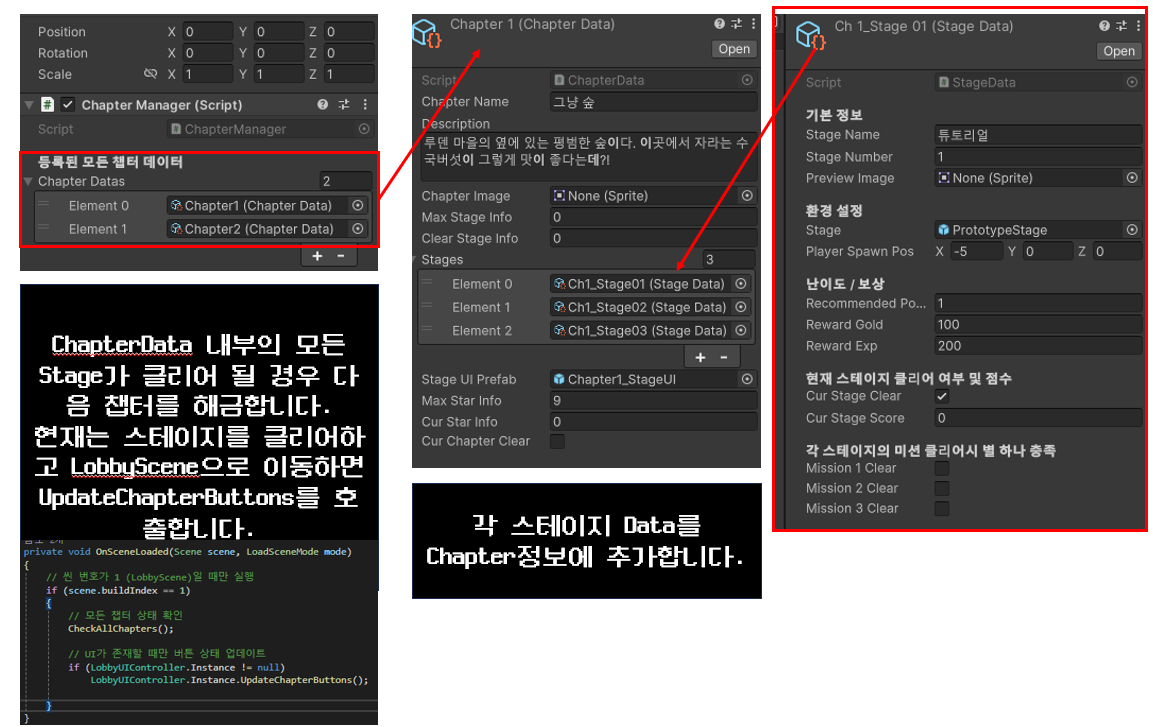 ChapterManager를 통해 각 ChapterButton에 순서대로 매핑시켜 사용합니다.