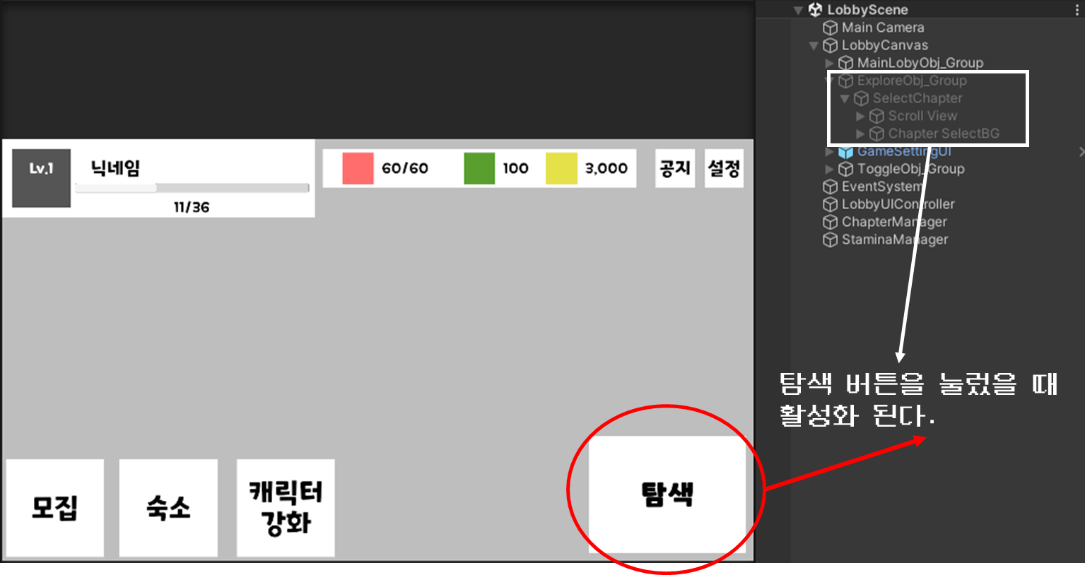 챕터는 LobbyScene의 UI에 구현되어 있다.