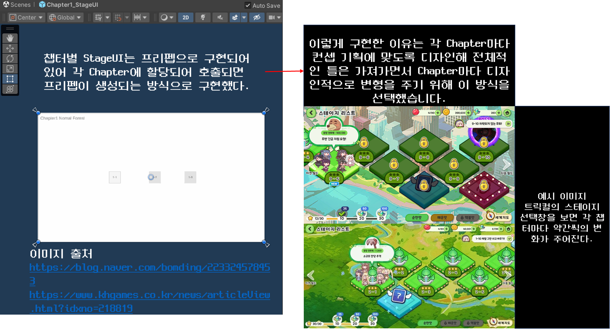 챕터 버튼을 누르면 각 챕터에 해당하는 StageUI가 생성된다.