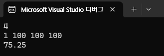 이번 문제는 입력받은 점수들을 활용해 평균을 구하되, 문제에서 제시한 변형된 공식을 적용해 계산하는 문제였다. 크게 어렵지는 않았지만, 주의해야 할 점이 있었다.