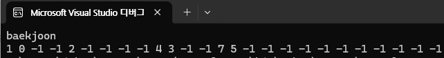 만약 해당 알파벳이 문자열에 존재하지 않는다면 -1을 출력한다.