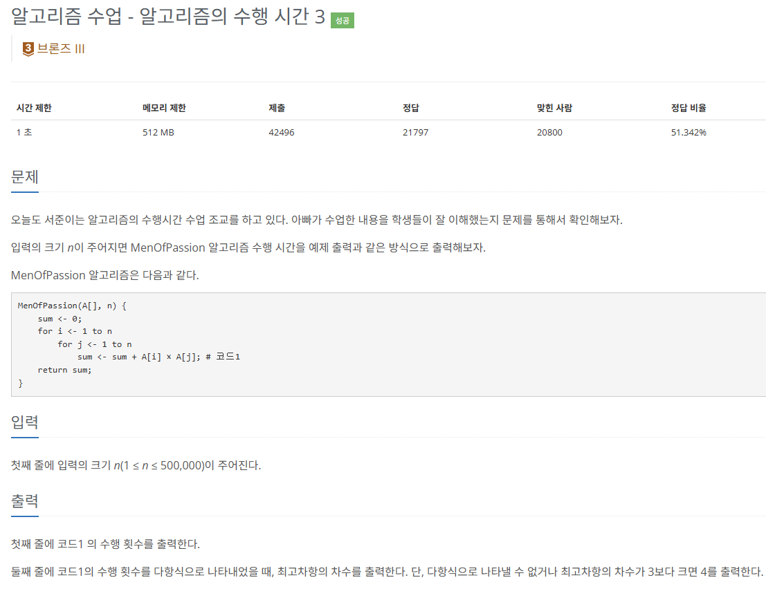 | 백준 - [단계별로 풀어보기 시간 복잡도] 24266 알고리즘 수업 - 알고리즘의 수행 시간 5 (0) | 2026.04.03 |