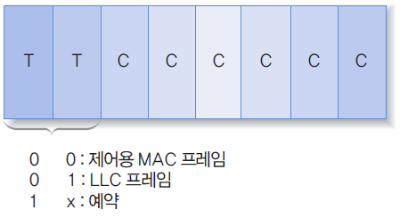 -TT 비트 =00 : 제어 기능을 수행하기 위한 프레임을 위해 정의되며, CCCCCC 비트의 코드 값으로 제어 명령의 종류를 구분한다.