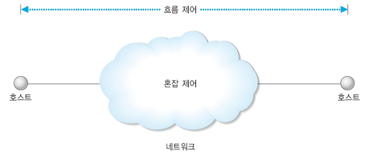 흐름 제어는 송신 호스트와 수신 호스트 사이의 논리적인 점대점 전송 속도를 다룬다. 반면, 혼잡 제어는 더 넓은 관점에서 호스트와 라우터를 포함한 서브넷에서 네트워크의 전송 능력 문제를 다룬다.