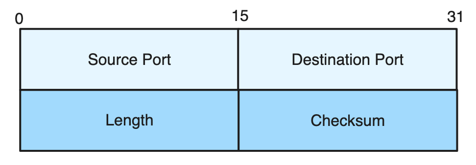 - Length(길이) : 프로토콜 헤더를 포함한 UDP 데이터그램의 전체 크기이다. 단위는 바이트이고, UDP 헤더의 크기가 8바이트 이므로 최솟값은 8이다.