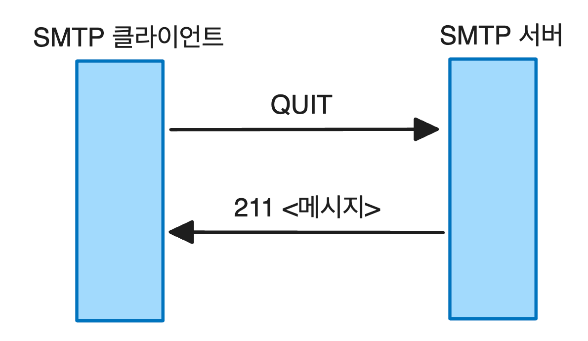 - 맨 마지막의 QUIT 명령은 SMTP 세션을 종료시킨다.