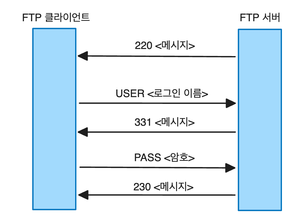 | USER <로그인 이름> | FTP 서버에 등록된 사용자의 로그인 이름을 전송한다. |