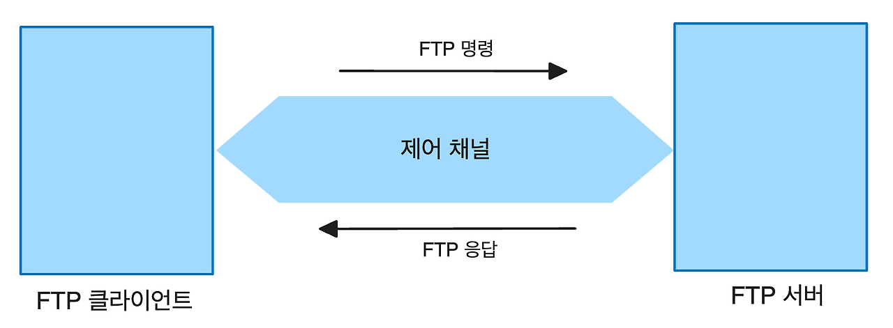 FTP 클라이언트와 서버는 FTP 명령을 처리하기 위해 제어 채널을 사용하며, 클라이언트가 전송한 명령에 대해 서버가 응답하는 방식으로 진행된다. FTP 명령과 응답은 모두 제어 채널을 통해 전달된다. 사용자가 파일 송수신 기능을 사용하지 않으면 데이터 채널을 생성되지 않는다.