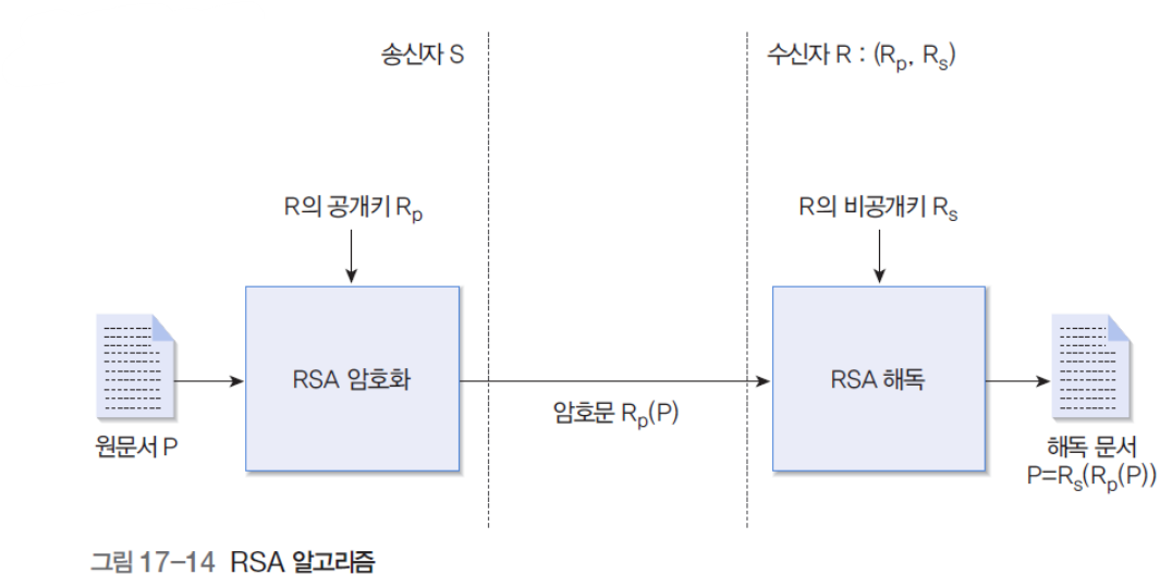 - 공개키 알고리즘의 대표적인 예는 RSA(알고리즘 발명자인 Rivest, Shamir, Adelman 세 사람 이름의 첫 글자) 알고리즘이다. RSA 알고리즘은 (공개키, 비공개키) 조합을 만드는 방법을 제시한다.