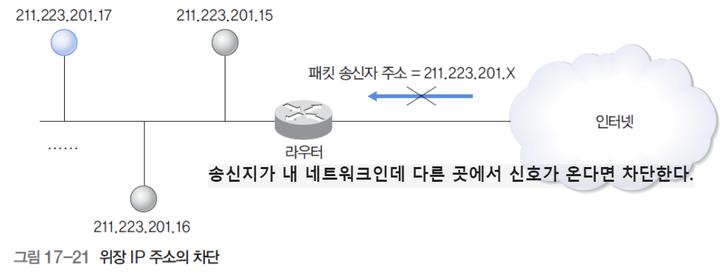 - 이러한 위협 요소에는 전송 데이터를 중간에서 감청하거나 임의로 변경하는 경우, 원격 호스트의 데이터에 위협을 가하는 등 직접적으로 특정 시스템의 내부에 침입하는 경우, 과도한 트래픽을 발생시켜 특정 호스트의 통신을 방해하는 경우 등이 있다.
