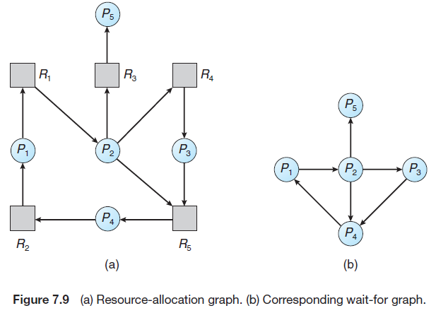 - 대기 그래프(wait-for-graph)를 이용한 알고리즘