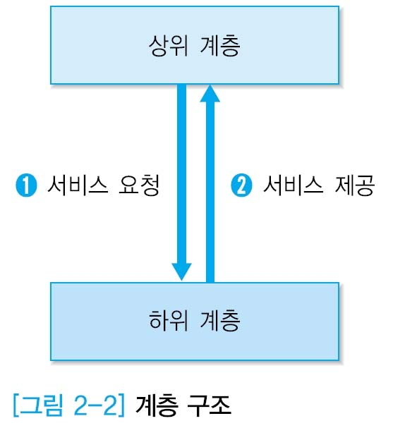 계층 구조에서는 상위 계층이 하위 계층에 특정 서비스를 요청하는 방식으로 동작하며, 요청을 받은 하위 계층은 해당 서비스를 실행하여 그 결과를 상위 계층에 돌려준다. 하위 계층의 실행 결과는 상위 계층에 결과 값을 직접 전달하는 방식이 될 수 있고, 주변 환경 값을 변경하는 부수효과 방식일 수있다.