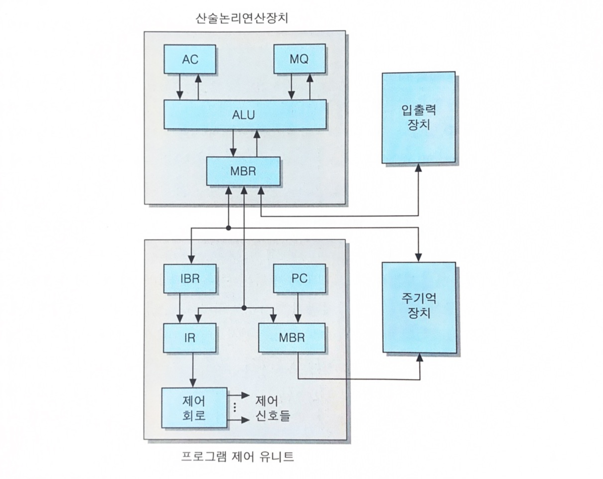 - 이와 같이 폰 노이만의 설계 개념이 적용되었던 초기의 컴퓨터인 IAS의 구조가 현대 컴퓨터들과 근본적으로 차이가 없다는 것을 알 수 있다.