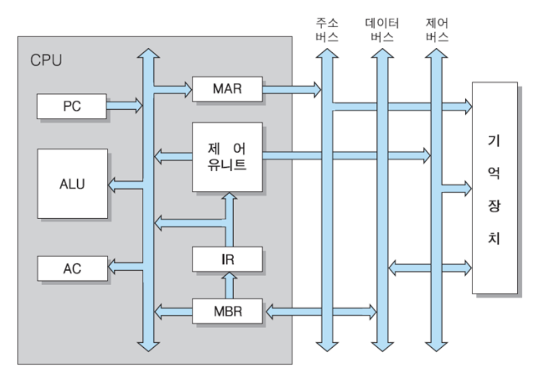 - 기억장치로부터 인출된 명령어는 MBR을 경유하여 IR에 저장되며, 실행 사이클에서 제어 유니트로 보내져 해독된다.