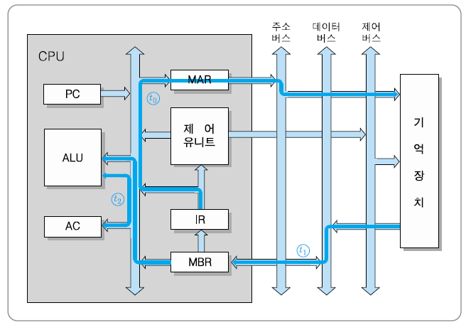 - CPU가 기억장치로부터 명령어를 읽어오는 명령어 인출(Instruction fetch)