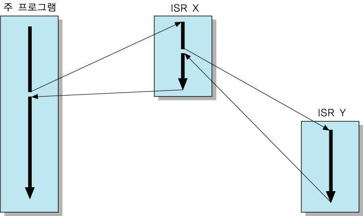 - 인터럽트 서비스 루틴을 수행하고 있는 동안에 다른 장치로부터 인터럽트가 들어오는 경우