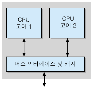 - 두 개의 CPU 코어들을 넣은 프로세서 칩을 듀얼 코어 프로세서라고 하며, 네 개를 포함시킨 칩은 쿼드-코어 프로세서라고 부른다.