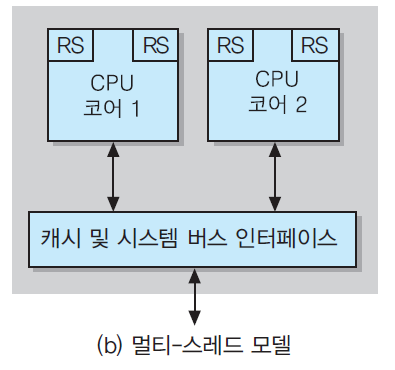 - 단일-스레드 모델 : 각 코어가 스레드를 한 개씩 처리