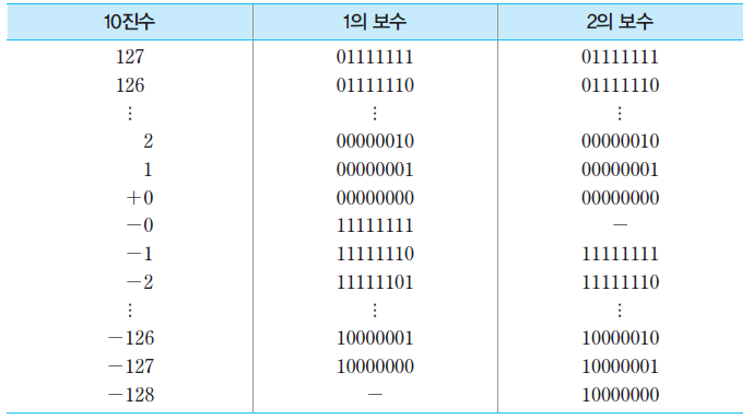 1의 보수 : -(2^7 - 1) ~ (2^7 - 1) = -127 ~ 127