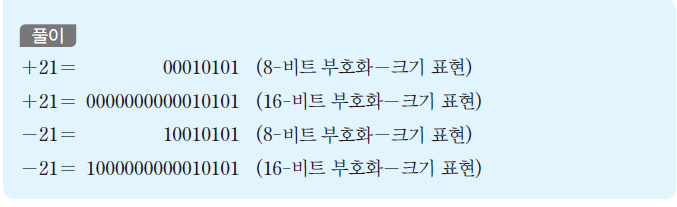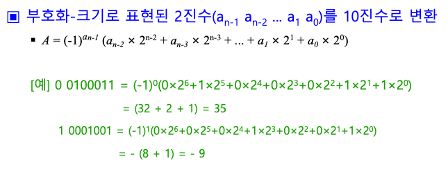 - 부호화-크기 표현(signed-magnitude representation)