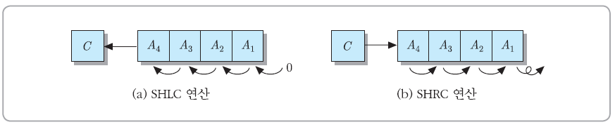 - 실제 CPU에서는 일반적으로 시프트 연산에 올림수(C) 플래그가 포함된다.